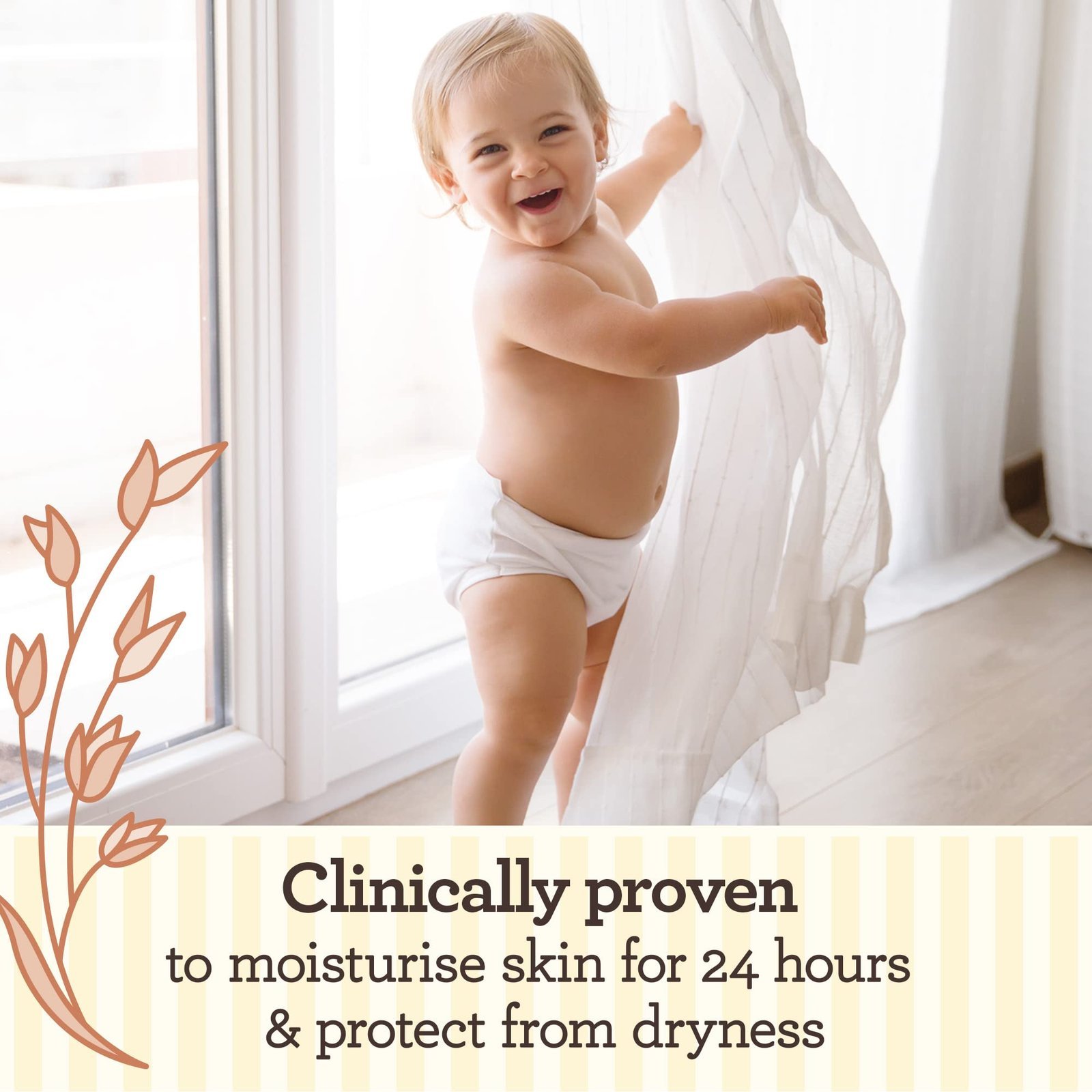 Specially formulated with natural colloidal oatmeal and oat essence, this formula moisturises for 24 hours and soothes baby skin, leaving it soft, smooth and healthy looking. For daily use. It feels nourishing and non-greasy and provides fast relief for very dry skin. Suitable for boday and face. With a soft fragrance. Formulated to minimise the risk of allergies. Fast absorption. Paediatrician tested.