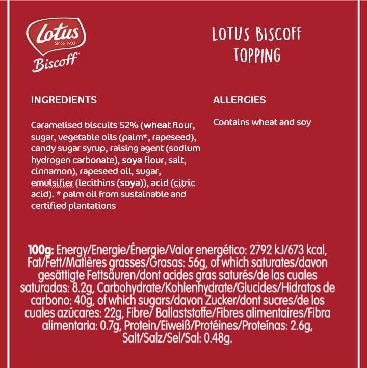 - MADE FROM ORIGINAL BISCOFF BISCUITS – Our Biscoff Topping is a sweet topping, made from the original Biscoff biscuits.