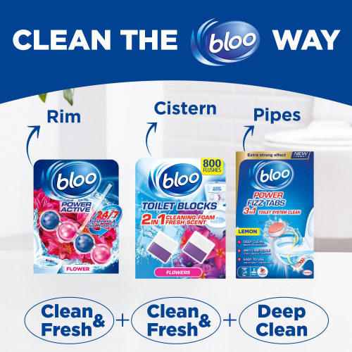 Be the first to review “Bloo Power Active Toilet Rim Block Fresh Flowers, with Anti-Limescale, Cleaning Foam, Dirt Protection and Extra Freshness – Pack of 3 Rimblocks” Cancel reply