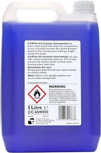 - CONVENIENT ALL-SEASON CLEANING: CarPlan All Seasons Screenwash comes pre-mixed for year-round ease. Skip the hassle of dilution and pour it directly into your washer bottle.