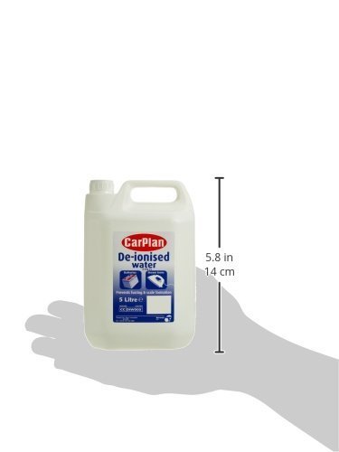 Details: Manufacturer’s Description Suitable for batteries, irons, water features and household appliances.5 Ltr Product Description Treated to remove most of the corrosive impurities present in untreated water, CarPlan De-Ionised water is not only ideal for use in vehicle batteries and radiators, but also many domestic appliances including steam irons. It helps prevent furring and scale formation which, over time, could cause damage.
