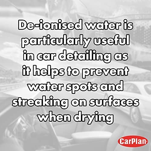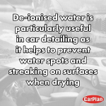 - De-ionised water is particularly useful in car detailing as it helps to prevent water spots and streaking on surfaces when drying