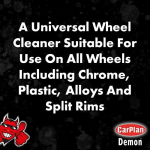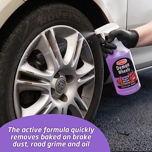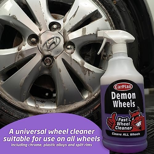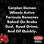 - CarPlan Demon Wheels active formula removes baked-on brake dust, road grime, and oil quickly.