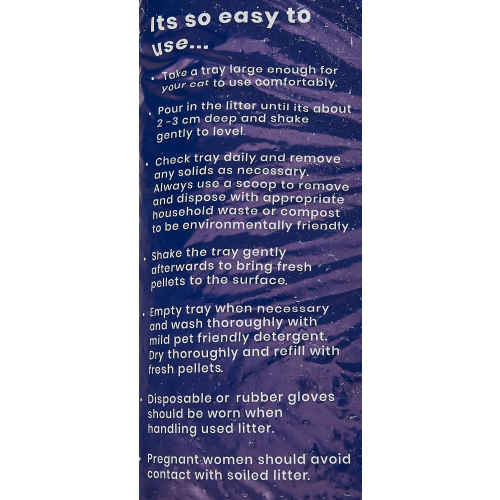 To use, pour Fresh Paws wood pellet cat litter into your cats tray until it’s 2-3 cm deep and shake until level. Check tray daily and remove any solids using a biodegradable poop bag and put into your non recyclable household waste. Approximately once a week empty the tray into old newspaper, wrap it up and bin it or place in your compost bin to be even more environmentally friendly. Wash the tray with a mild pet friendly detergent and dry thoroughly – refill with fresh wood pellets. Fresh Paws Wood Pellet Cat litter can also be used for all types of domestic spillage.