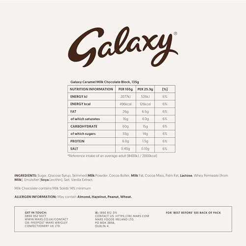 • One 135g Galaxy Caramel & Milk chocolate bar