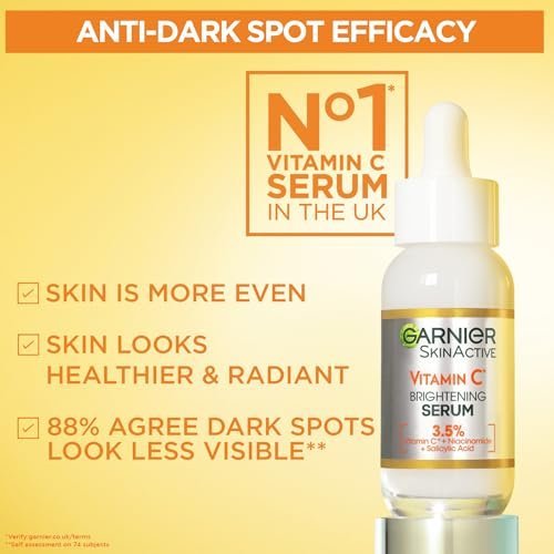 Garnier Vitamin C Serum for Face, Anti-Dark Spots & Brightening Serum, 3.5% Vitamin C, Niacinamide, Salicylic Acid & Lemon Extract, Brightening Serum For Dull, Tired Skin – 30Ml , Pack of 1