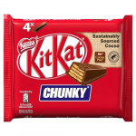 Kit Kat Chunky Milk Chocolate Bar is a delicious chocolate bar, comprising a crispy wafer covered with a tasty layer of milk chocolate. A great treat when you’re enjoying a break, a KitKat with a bit more bite. No artificial colours, flavours or preservatives. Multipack contains 4 bars of 40 g each.
