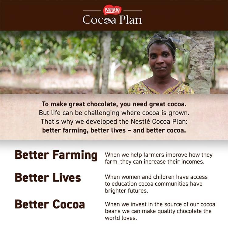 Sugar Wheat Flour (contains Calcium, Iron, Thiamin and Niacin) Milk Powders (Whole and Skimmed) Cocoa Mass Cocoa Butter Vegetable Fats (Palm, Shea, Mango Kernel, Sal) Lactose and Proteins from Whey (from Milk) Whey Powder (from Milk) Butterfat (from Milk) Emulsifier (Lecithins) Yeast Raising Agent (Sodium Bicarbonate) Natural Flavourings