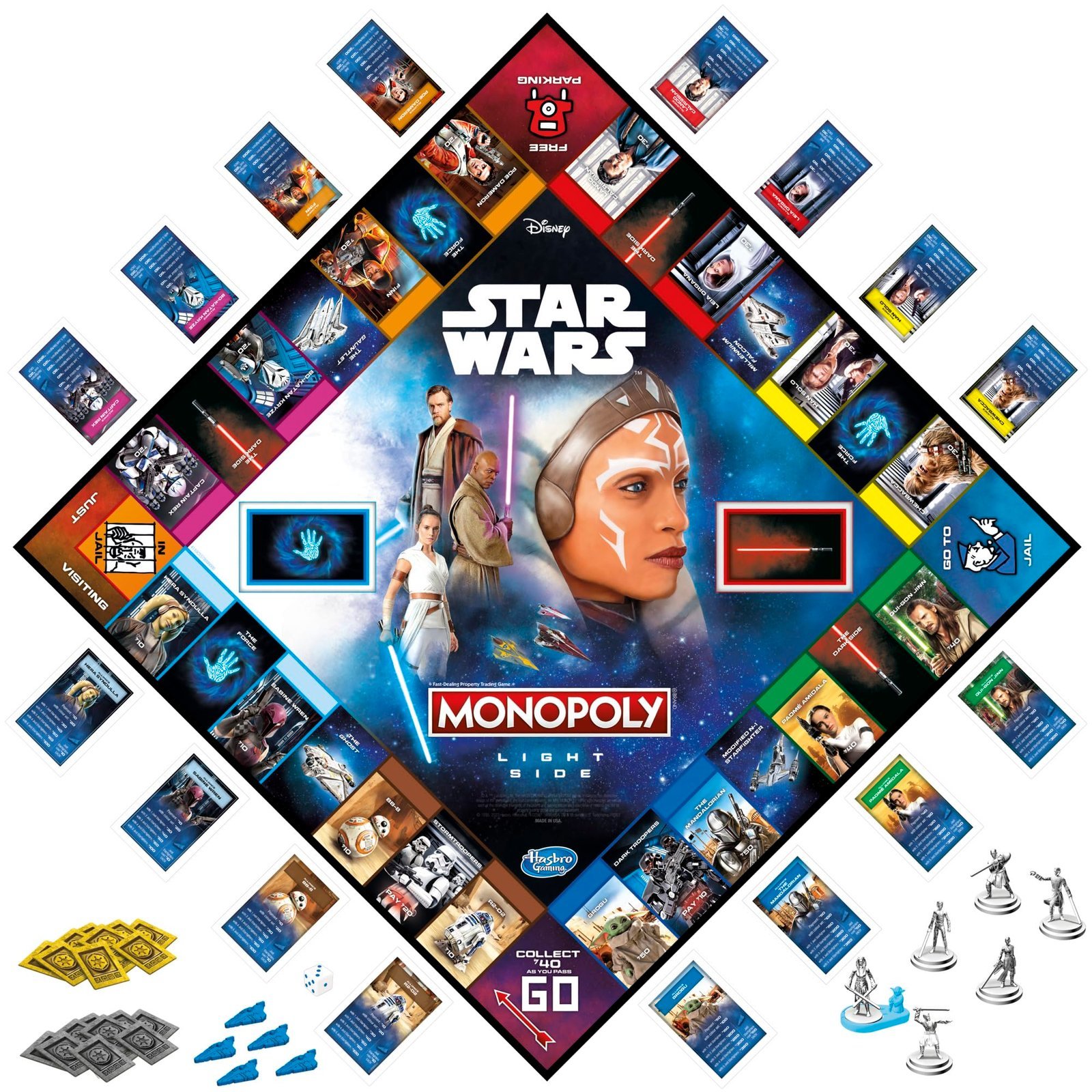 - STAR WARS JEDI-THEMED MONOPOLY GAME: this Monopoly: Star Wars Light Side Edition game celebrates the path of the Jedi with themes, artwork and game components inspired by the Star Wars franchise