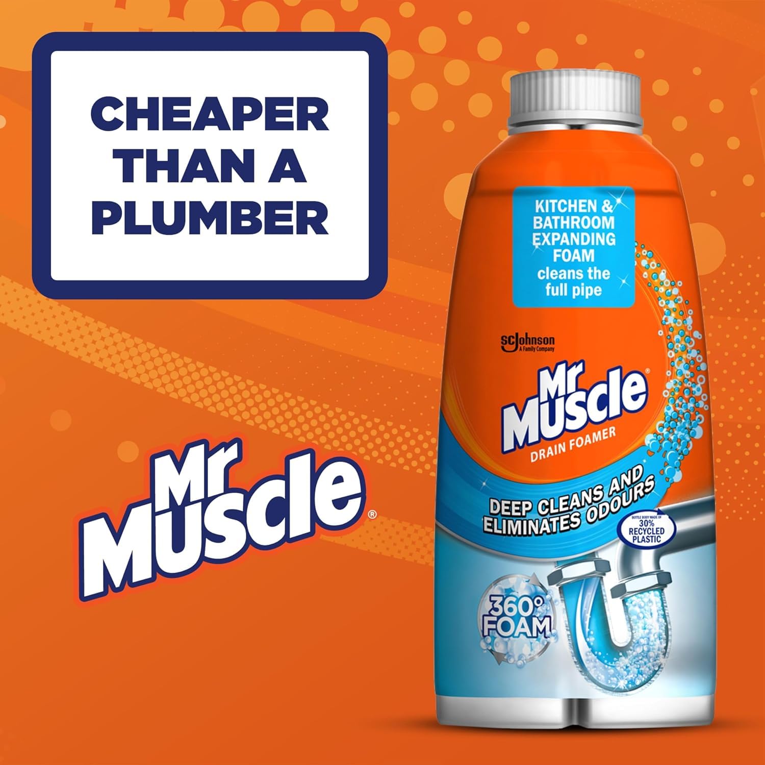 Mr Muscle Drain Foamer, Drain Cleaning Foam to Unblock & Eliminate Odour, 500 ml (Pack of 1)