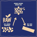 • CLEAN, SIMPLE EATING – a snack bar containing 100% natural ingredients, no added sugar, is raw-cold pressed, has a source of fibre, vegan, gluten, dairy free, has no preservatives and is Kosher certified.
