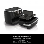 • INCLUDES: Ninja FlexDrawer Air Fryer (UK Plug), Non-stick, dishwasher safe 10.4L drawer, divider & 2x crisper plates, Chef-created Recipe Guide. Weight: 9.3kg. Colour: Black