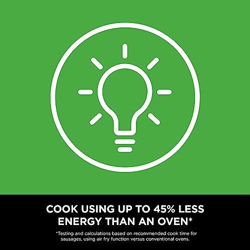 • COOK USING UP TO 45% LESS ENERGY THAN AN OVEN*: (*Testing and calculations based on recommended cook time for sausages, using air fry function versus conventional ovens.) Cook using little to no oil.