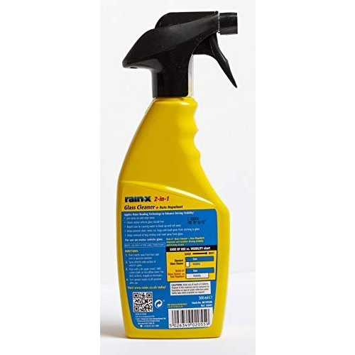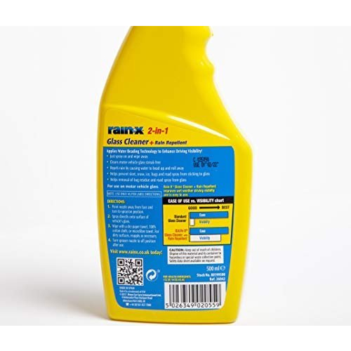 Rain X 2 in 1 Rain repellent and Glass Cleaner improves wet weather visibility and safety by creating an invisible hydrophobic coating that repels rain, sleet and snow.The coating also makes for easy removal of ice,salt,mud and bugs.Ideal for car windscreens,side and rear windows and even headlights. Please be aware that it is not recommended for use on plastic surfaces. The 2 in 1 Rain X Rain Repellent also has the added bonus of glass cleaner included. This helps to leave your windows streak free and removes bugs, residue and road spray. Rain X Rain Repellent helps improve visibility upto 1 second earlier. For example, if driving at 60mph, the stopping distance could be improved upto 90ft.A major safety issue when driving in wet weather.Easy to use and apply, simply apply to the microfibre cloth and wipe onto the exterior of your windscreen/windows using a circular motion. Reapply as necessary. This product will last upto 60days, please reapply frequently for maximum results.