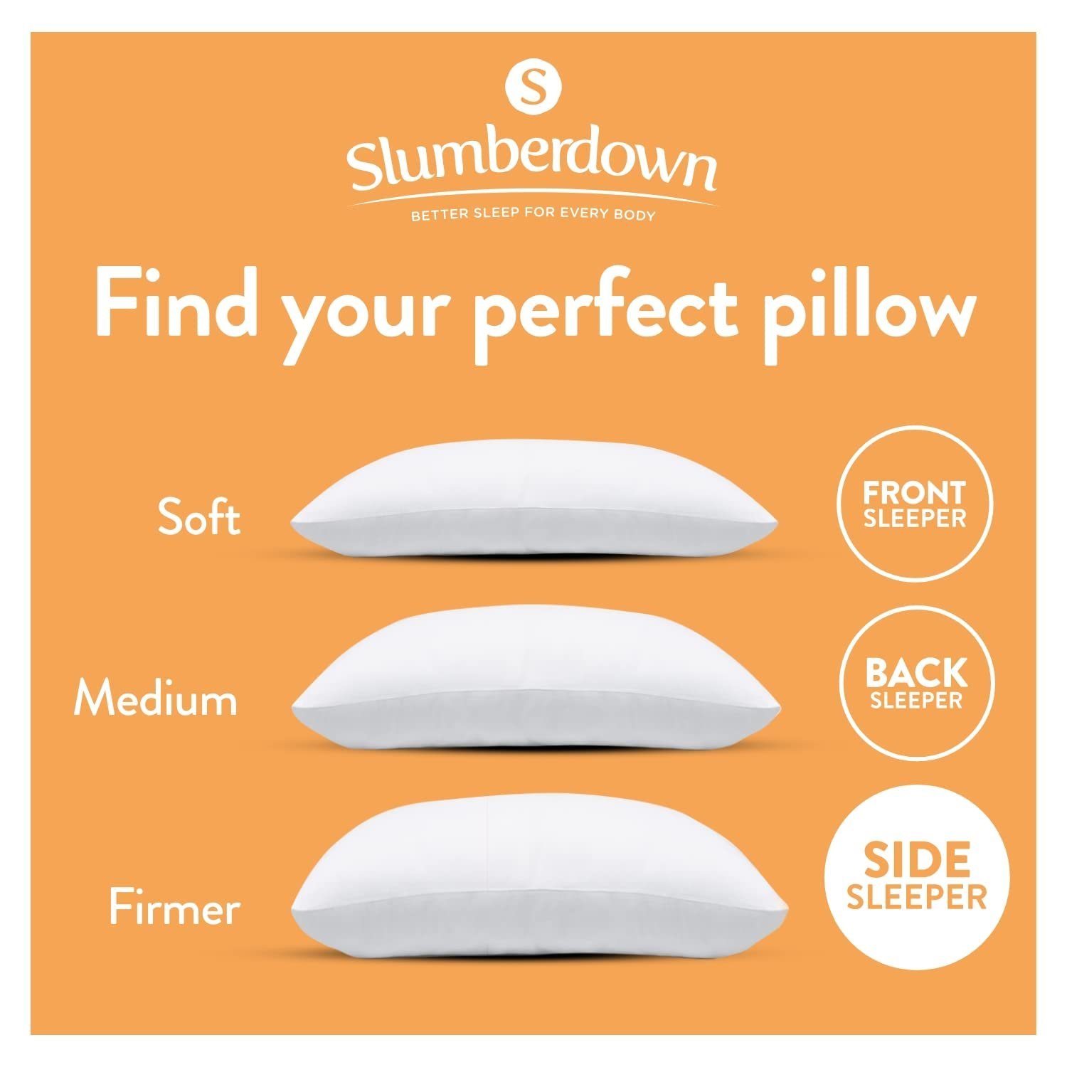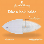 At Slumberdown, we believe every body deserves a better night’s sleep and the power of great bedding can get your there. Your duvets, pillows, protectors and toppers are used every night and over two and a half thousand hours every year. Our range of products caters for every body and can help you gently drift off to sleep and wake up feeling refreshed. Slumberdown, better sleep for every body. We want you to rest your head on the perfect pillow for a better night’s sleep. That’s why we’ve got pillows for front, back and side sleepers, in a range of fillings, so you can tailor your pillow to suit your needs and enjoy a blissful restful night’s sleep. Our super support pillow has been carefully designed with a unique core block to align your head, back and spine to rest in the right position, keeping you comfortable all through the night. The best pillows for side and back sleepers help to bridge the gap between your head and your neck. Prevent aches and neck pain by using a supportive, walled pillow. Our pillows are made with a soft hollow fibre filling that surround you with a cosy comfy feeling so you can enjoy great night’s sleep all night long. Our soft touch cover has a smooth finish, so you can feel cosy and comfy, when snuggling into bed to enjoy a great night’s sleep and wake up feeling refreshed. We want to make life easier for you, that’s why this product is washing machine and tumble drier friendly, so it can be back on your bed as quickly as you need it. Our pillows are all UK standard sizes, so are a suitable fit for all standard pillow covers:- Length 48 cm x Width 74 cm.
