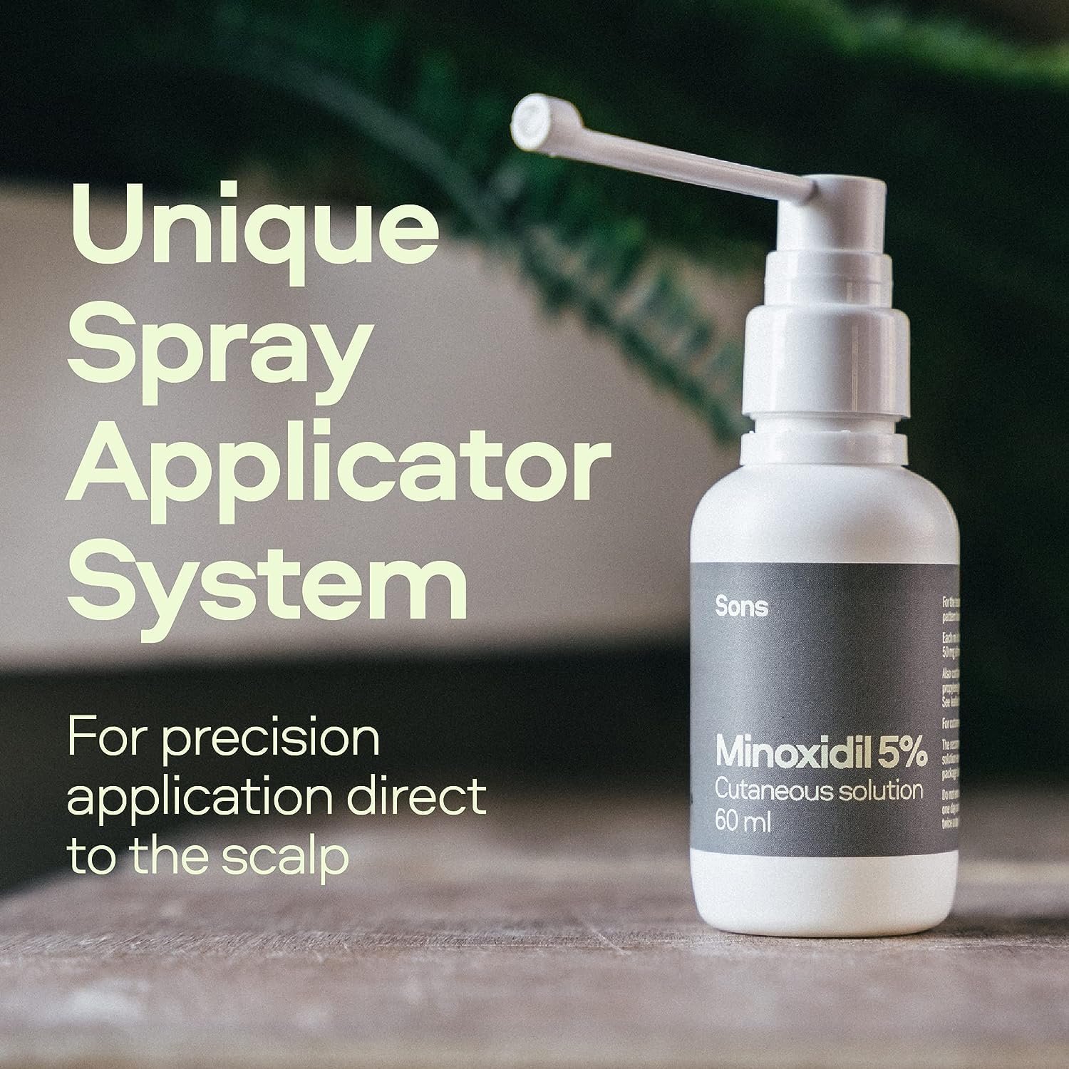 Sons Minoxidil 5% Cutaneous Solution – Hair Regrowth & Thickener Formula – For Hair Loss & Thinning in Men – Reactivates Shrunken Follicles – Precision Application System – 3 Month Supply