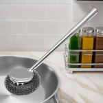 - Enhanced Cleaning Comfort: Designed for optimal kitchen cleaning, our steel wool scrubber features a non-slip handle that conforms to the palm’s curvature, ensuring a secure and comfortable grip. The extended handle keeps hands away from grease and grime while reaching deep pots or narrow spaces effortlessly.