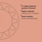 - Guaranteed protection against odours: The only nappy bin that twists and individually wraps each nappy so that unpleasant odours can’t escape, even when the lid is opened